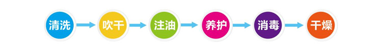 *2.电脑控制触摸屏, 三种工作程序: 清洗养护、一键养护、干燥;三种工作模式:轻污、重污、快捷,可设置干燥时间和消毒时间。同时也可一键注油,不清洗;